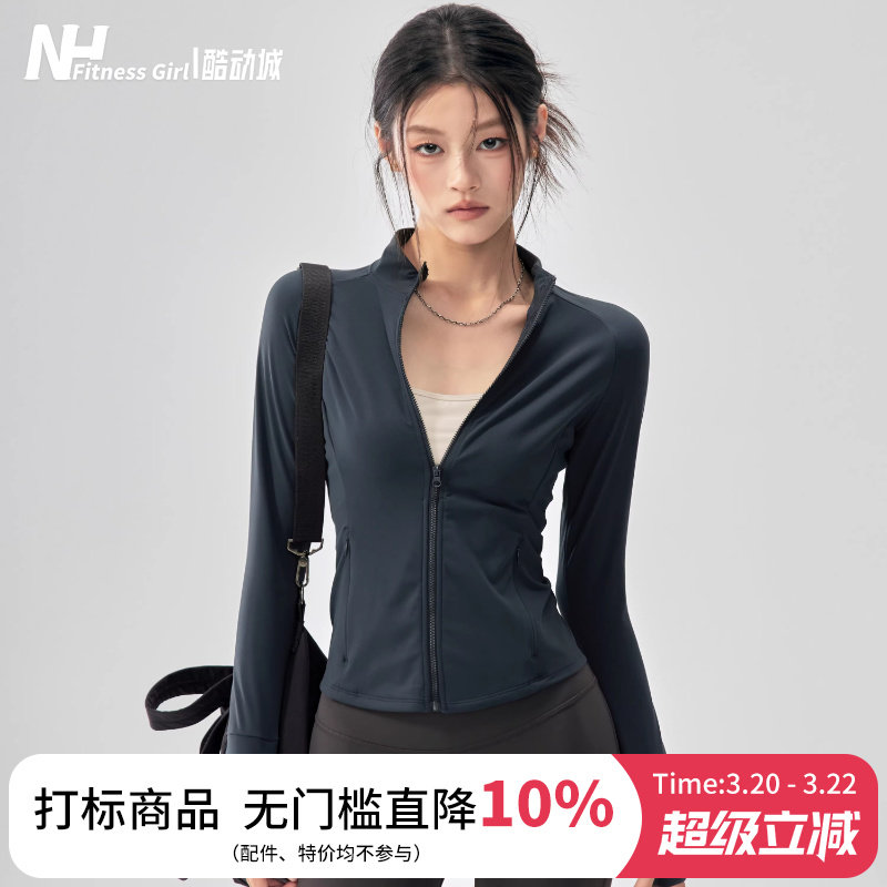 Fitness girl stand-up collar yoga jacket autumn slim zipper sports top slimming Pilates running long sleeve new