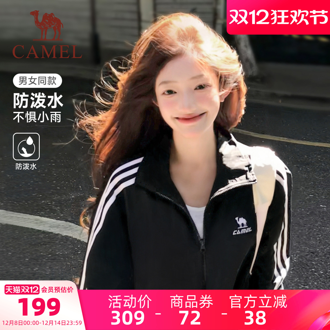 Camel all-terrain trench coat stand-up collar jacket women's men's couple autumn outdoor sports water-repellent black jacket