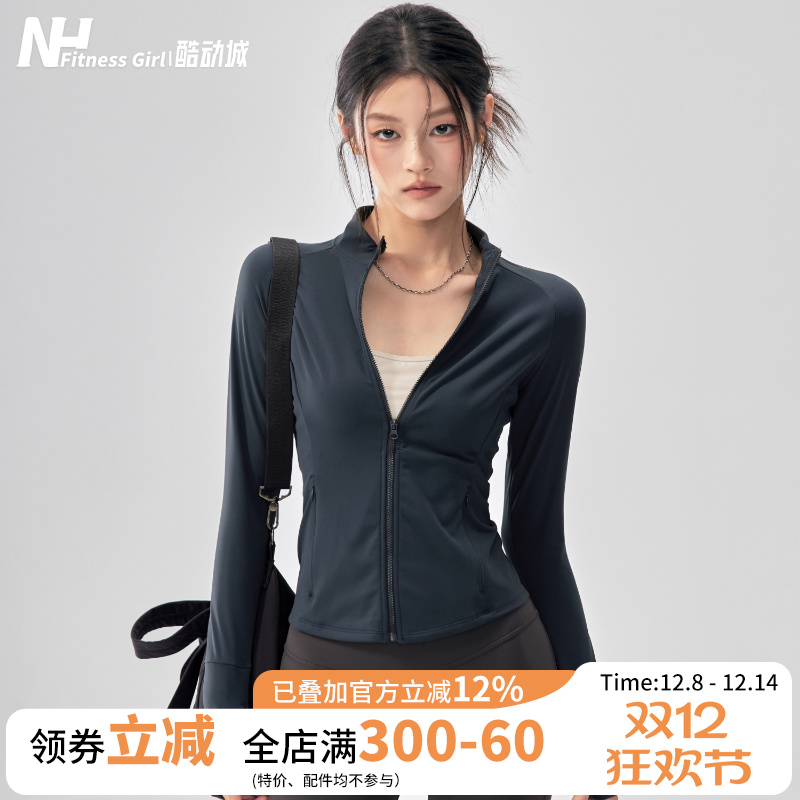 Fitness girl stand-up collar yoga jacket autumn slim zipper sports top slimming Pilates running long sleeve new
