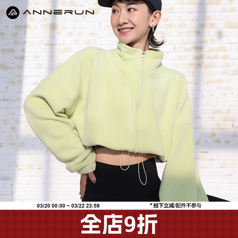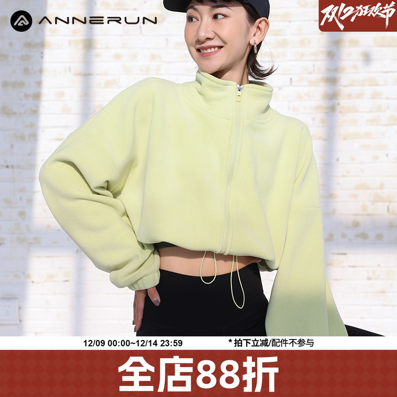 Annerun Lambfleece Sports Jacket with fleece and thickened stand-up collar fleece for sports fitness and casual polar fleece top