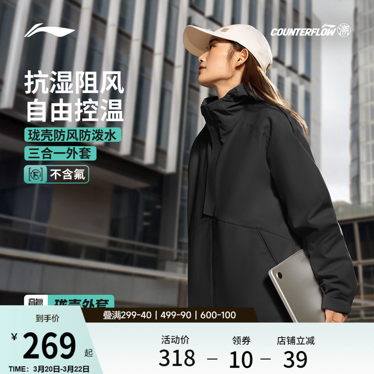 Li Ning outdoor CF trace丨Longshell three-in-one jacket for men and women, athleisure windproof charge softshell jacket