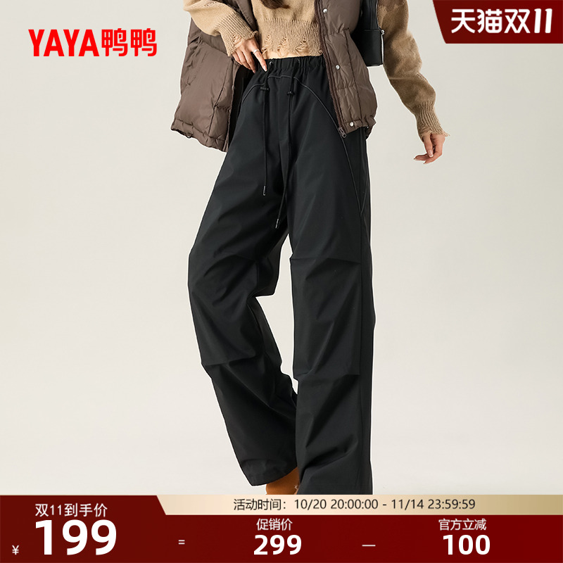 Yalu high-end down pants women's winter fashion 2025 new fleece warm cotton pants casual cargo pants