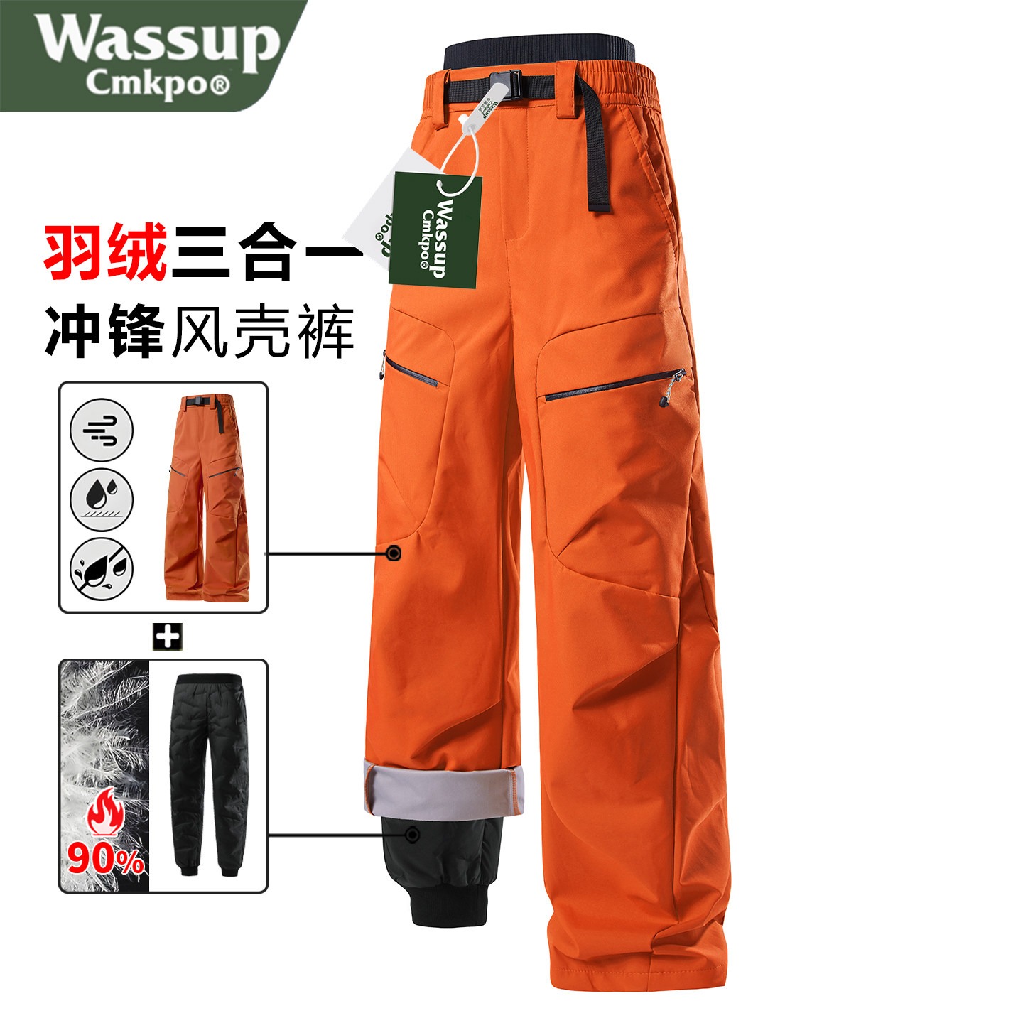 WASSUP CMKPO 3-in-1 down pants women's winter wear northeast minus 40 degrees cold protection ski assault pants