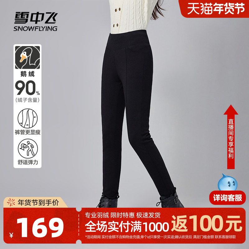 Fly in the Snow 2026 Fall/Winter New Women's Goose Down Pants Far Infrared Heat Storage Knee Pads Slim Slim Warm Black