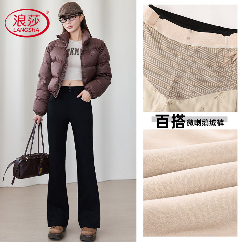 【Langsha Micro 90 Goose Down Pants】2025 Autumn and Winter Warm Fleece High-Waisted Puffer Pants Slim and Slim Wear Outside