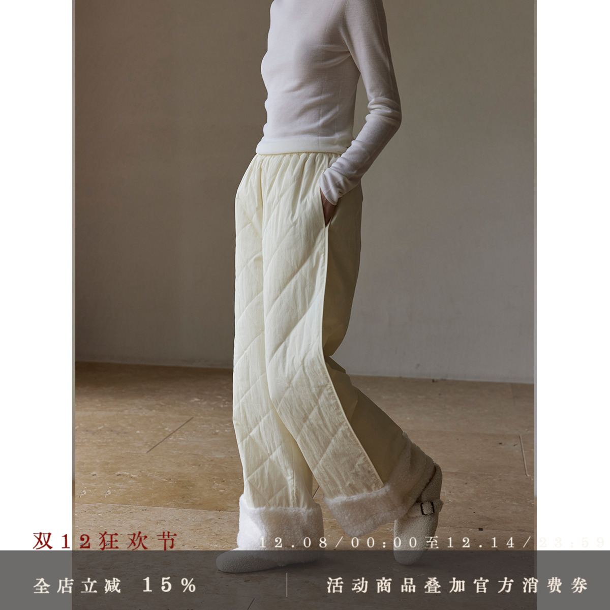 Single/two pieces of scissor shopping mall counter tail light diamond checkered down cotton pants for women in autumn and winter thickened and warm Harlem pants