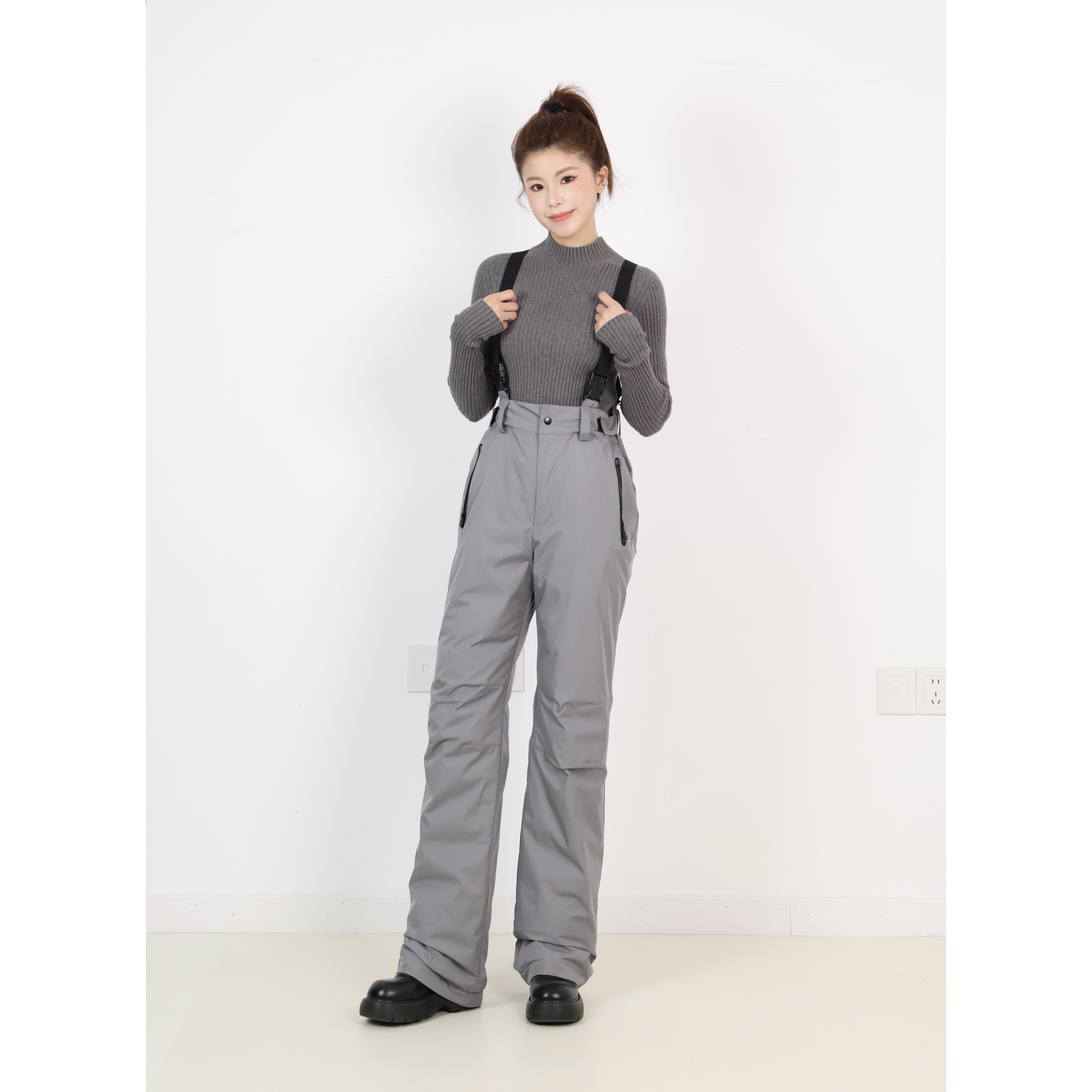 Down pants with straps, women's new 90% white goose down high-waisted slimming, warm and thickened fashionable ski pants for women