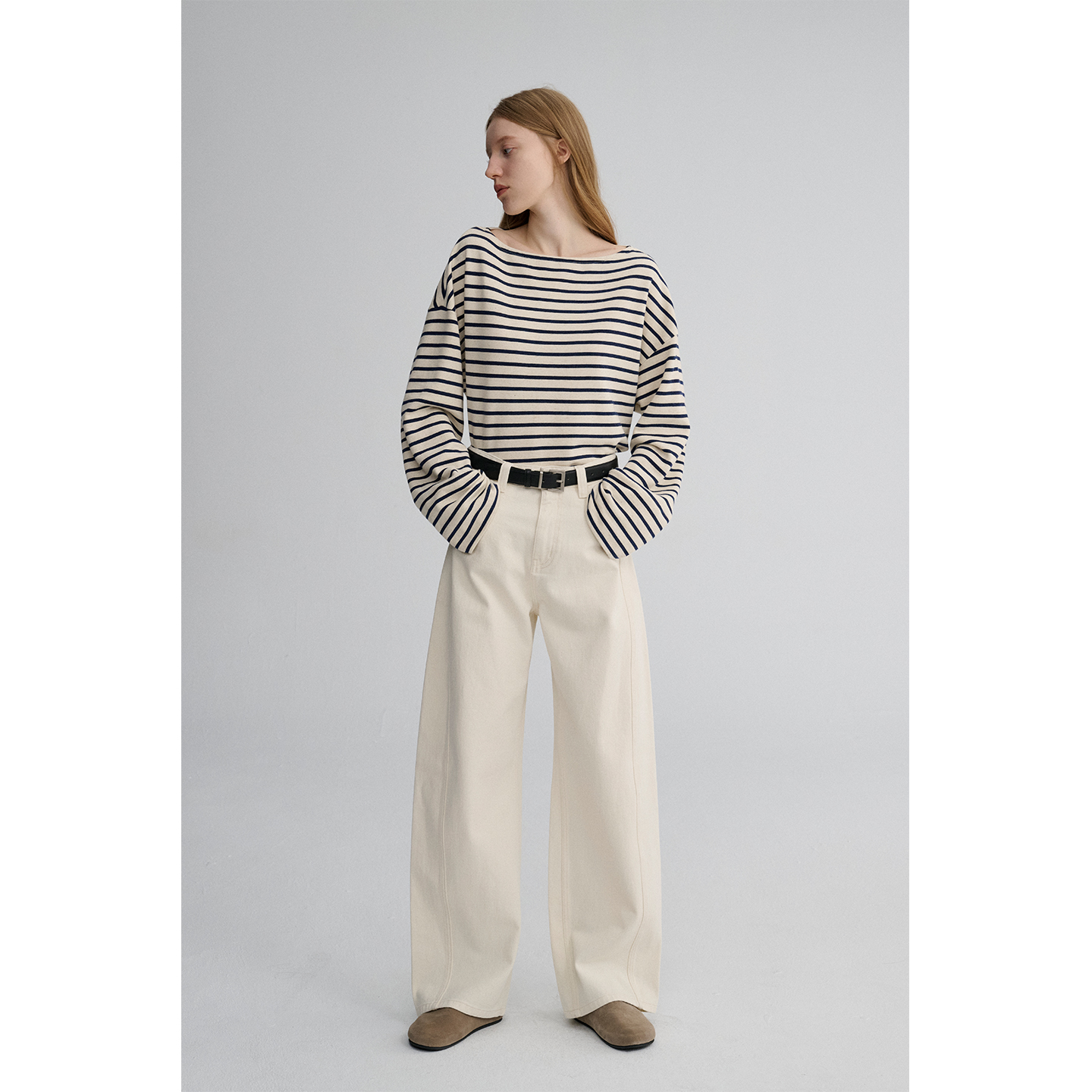 MAISON CECILE Cotton Texture White Minimalist Commuter Split Three-dimensional Slack Denim Wide-Leg Pants