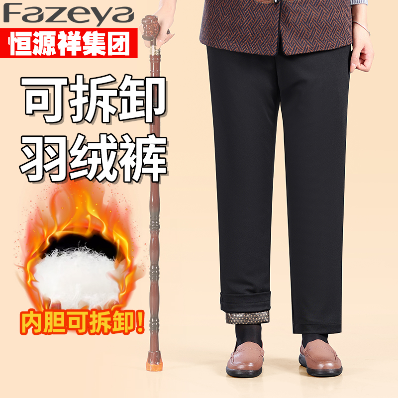 Hengyuanxiang Group Colorful Sheep 70 Years Old Down Pants Women Removable Liner Winter Thickened Duck Down Warm Cotton Pants
