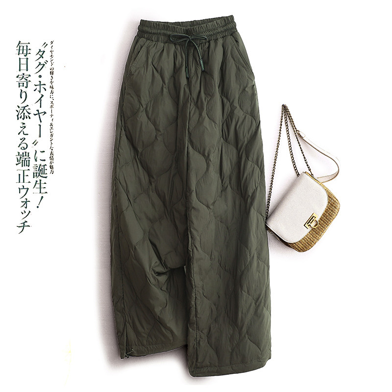 Wear light down and cotton pants for women's autumn and winter, high-waisted slimming, straight-leg casual close-up and leg-tight mom wide-leg pants