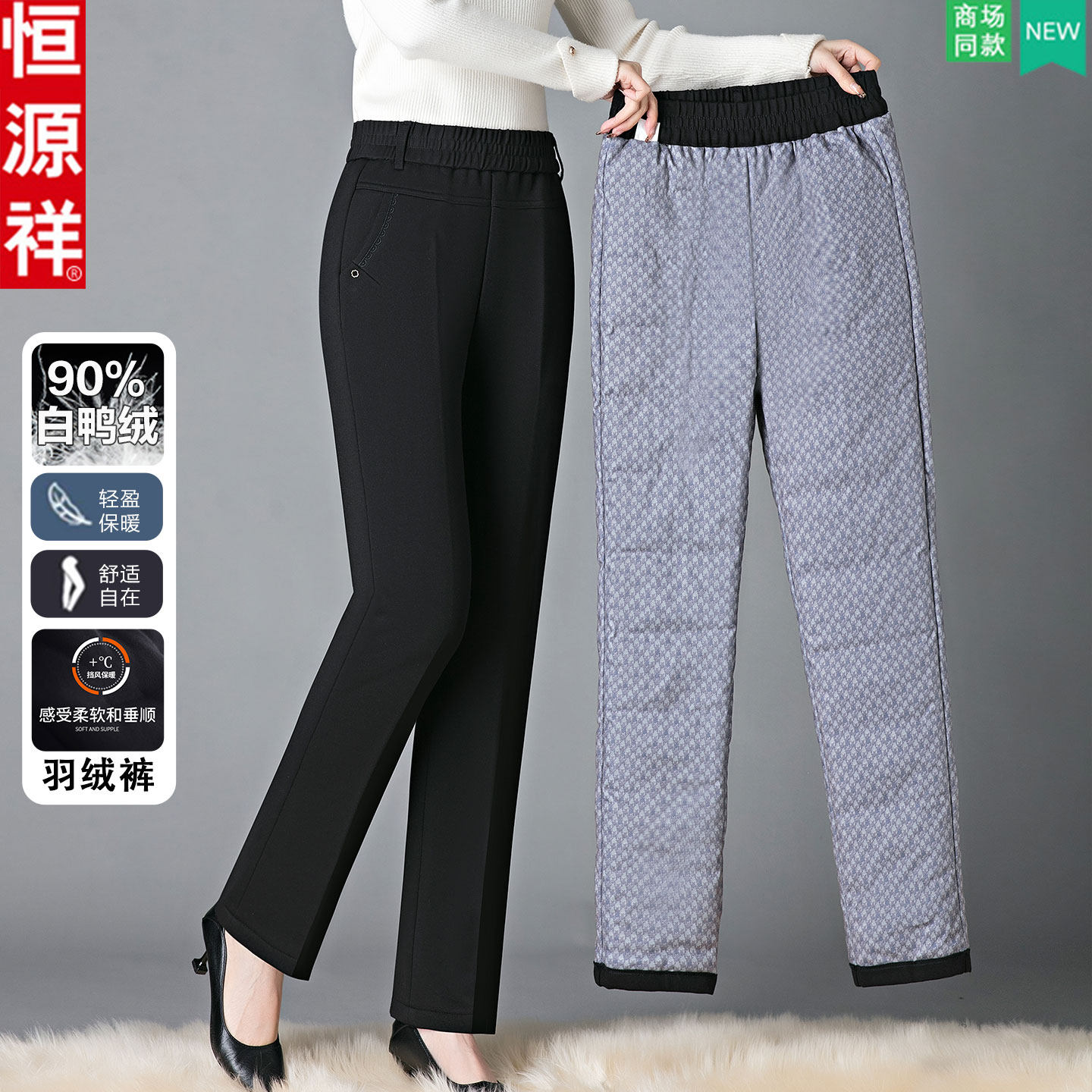Hengyuanxiang brand mom down pants wear middle-aged and elderly women's pants in winter, and thickened straight-leg pants in the northeast to protect against the cold