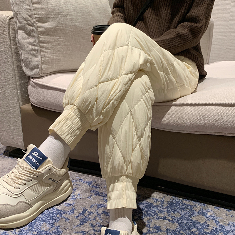 Down pants, women wear high-waisted thickened white duck down inside and out, fashionable, loose, casual, slim, slim, and slim Northeast winter cotton pants