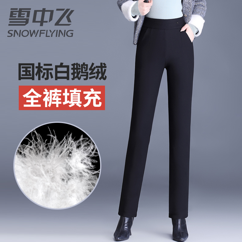 Down pants, women wear straight winter high-waisted thickened plus-size middle-aged and elderly mothers, loose white goose down warm cotton pants