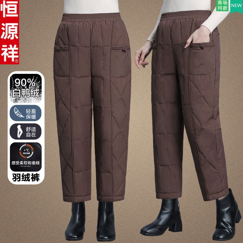 Hengyuanxiang mother's down pants, women wear foreign grandma's cold-proof pants in winter, thickened straight-leg pants for middle-aged and elderly people