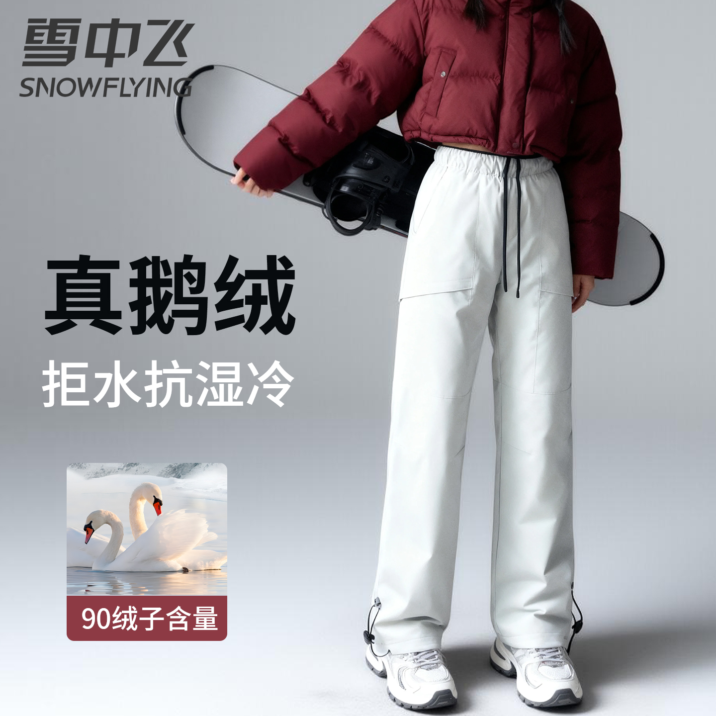 Flying in the snow, high-end goose down pants, women wear cargo down pants, windproof and waterproof snow pants at minus 40 degrees northeast