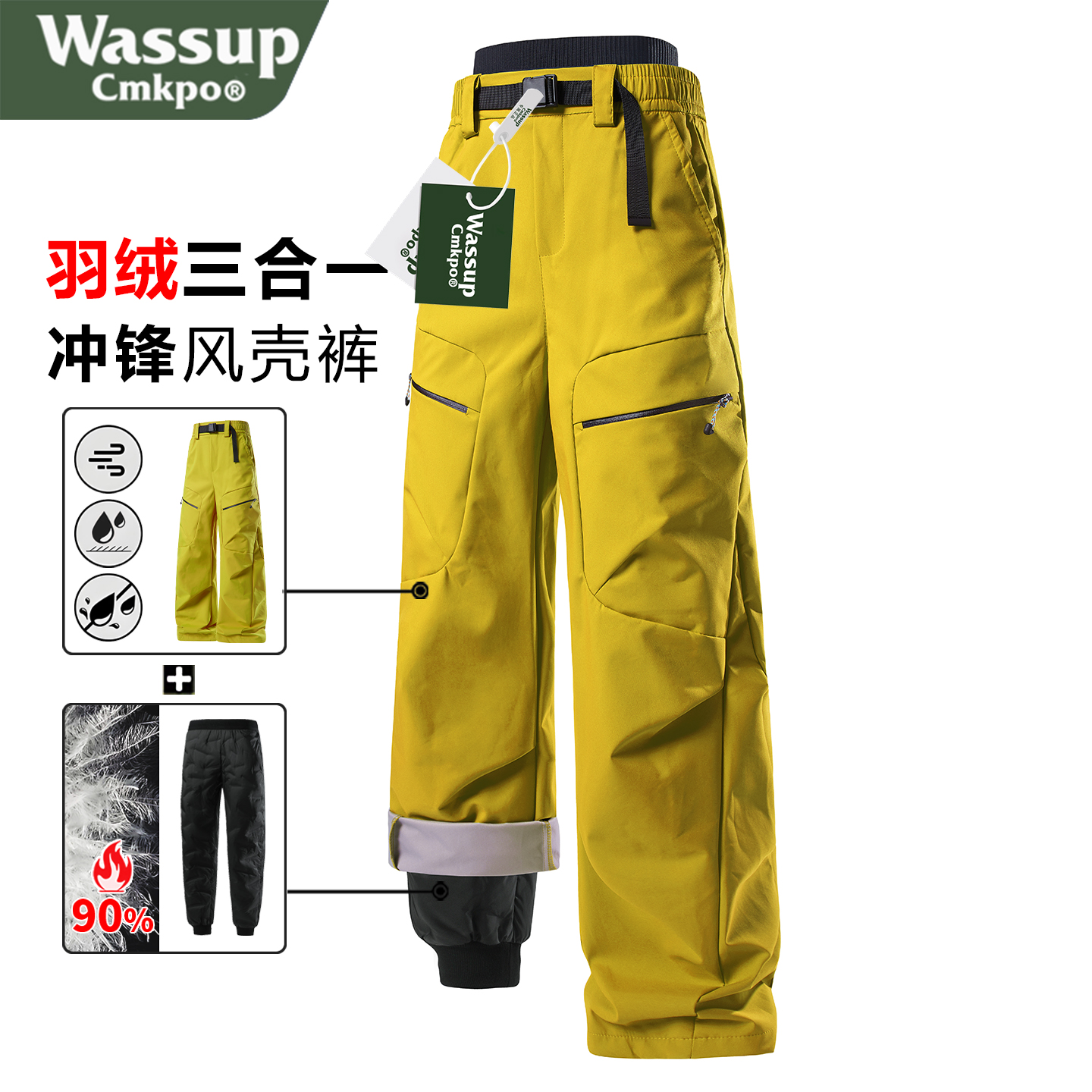 WASSUP CMKPO Down Jacket Pants 3-in-1 Women's Winter Outdoor Anti-Climbing Skiing Down Pants Men