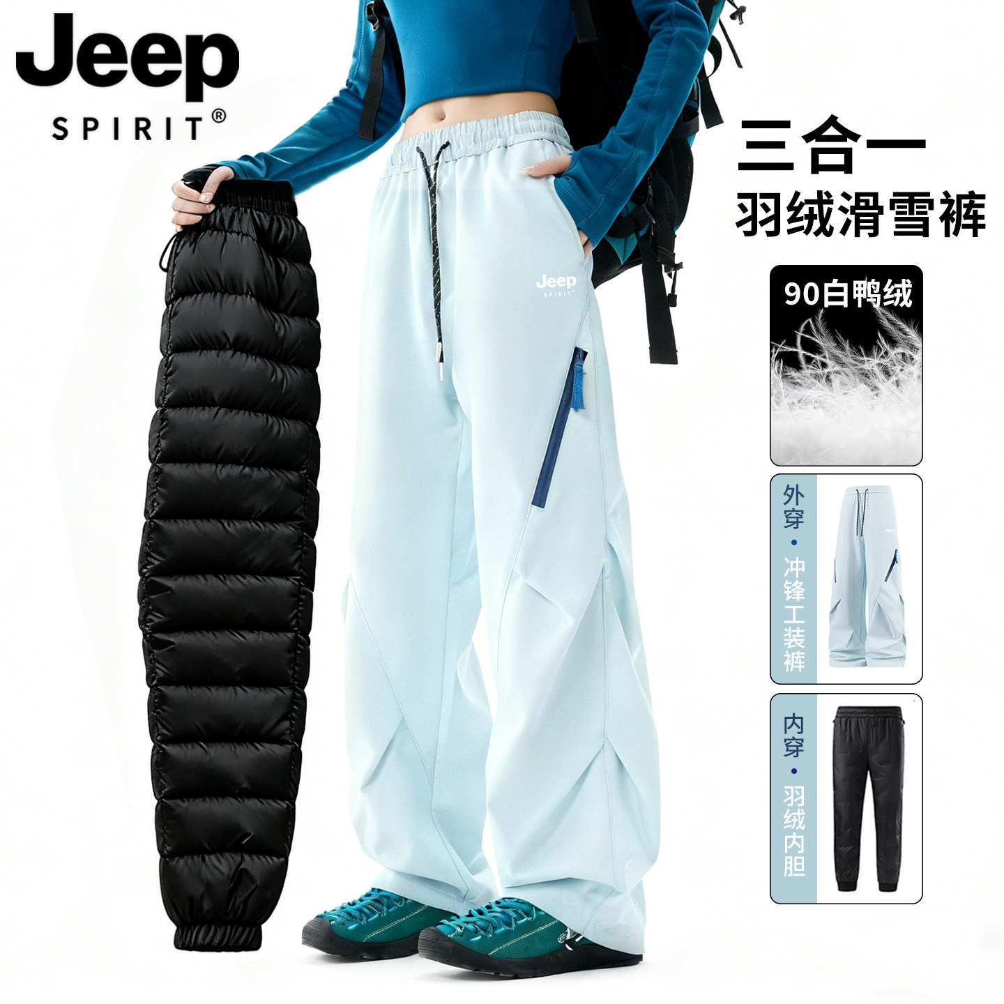JEEP Down 3-in-1 Assault Pants Women's Winter Northeast Cold and Windproof Thickened Thickened Mountaineering Cargo Ski Pants