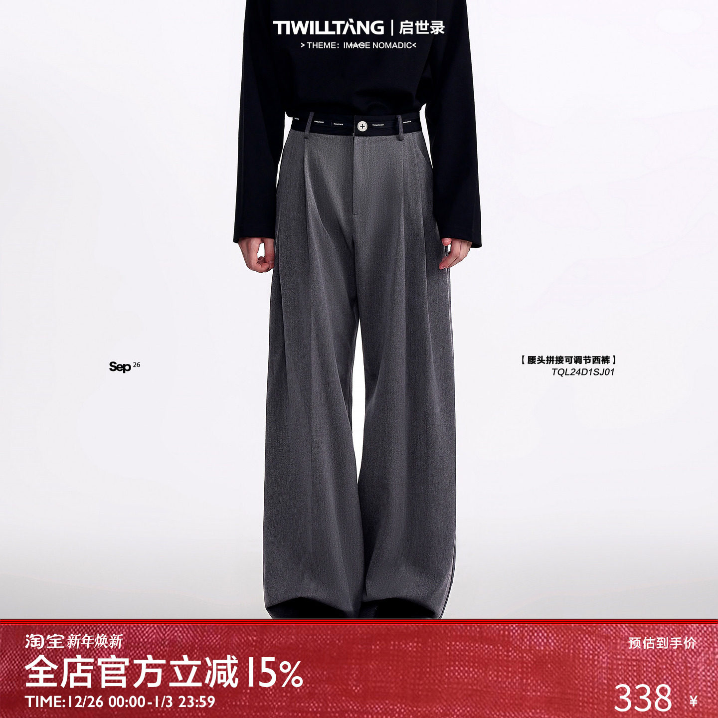 TIWILLTANG "Empty Room White" new spliced adjustable straight waist adjustable trousers