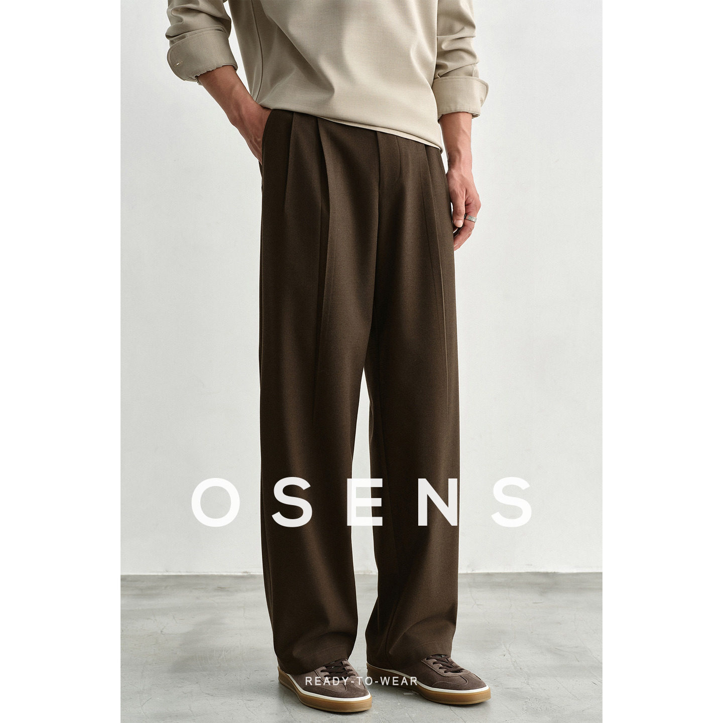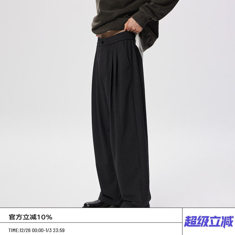 OSENS imitation cashmere fleece twill wide-leg trousers old money style elastic waist versatile straight leg slacks men's autumn and winter