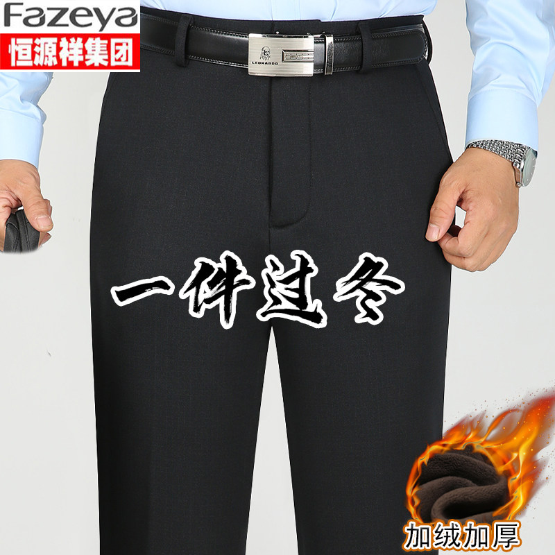 Hengyuanxiang Group colorful sheep stretch casual pants men's fleece thickened middle-aged and elderly straight dad trousers large size
