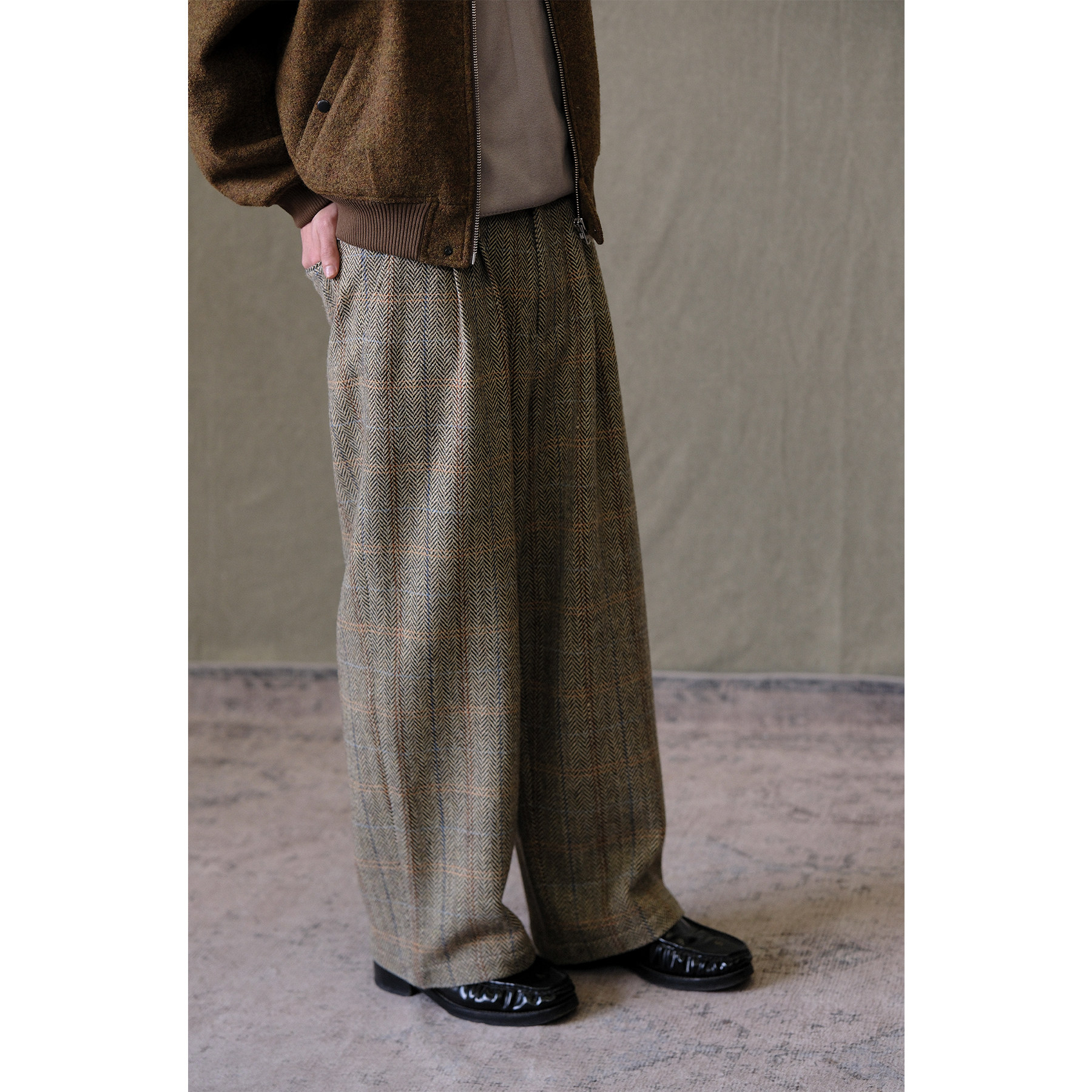 Old money style retro fleece plaid belt scimitar trousers for men and women, autumn high-end thickened wide-leg casual pants