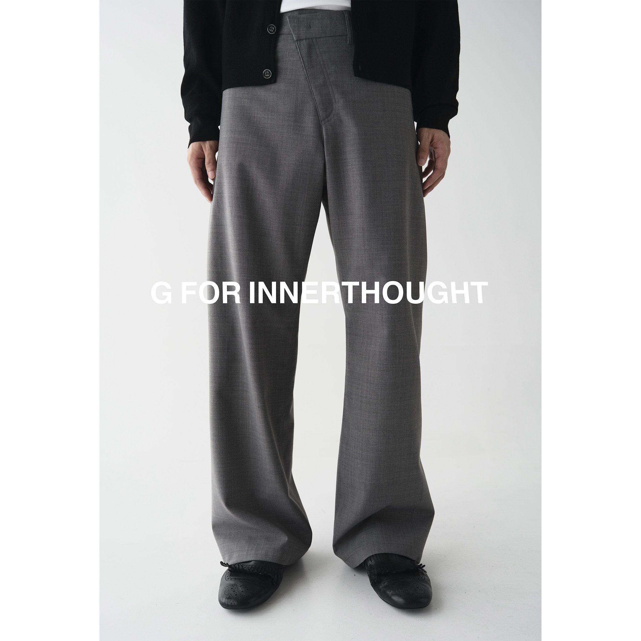 G FOR INNERTHOUGHT Australian diagonal placket wool drape scimitar trousers men's gray casual old money style