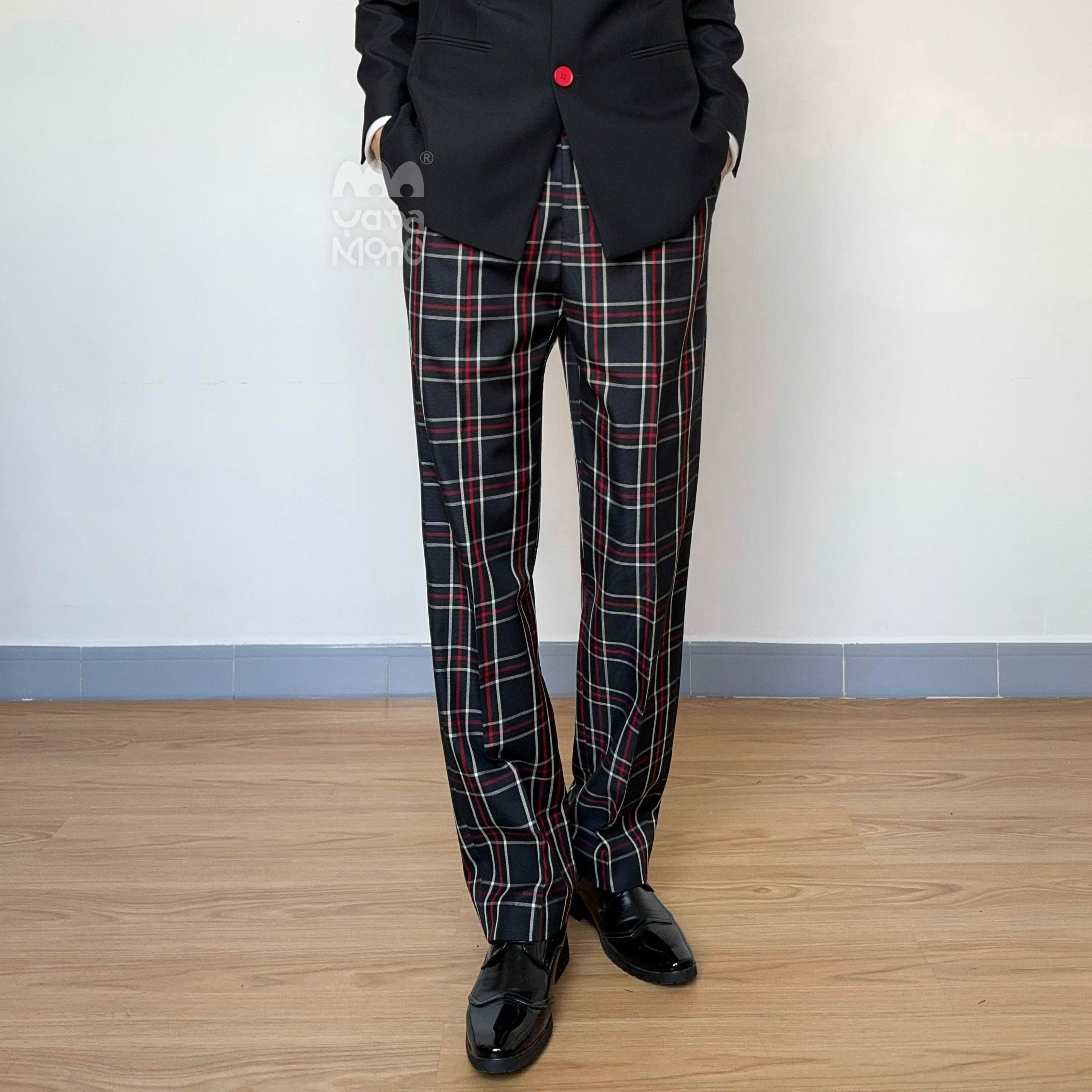 YM Japanese plaid pants black red DK uniform trousers straight p5r Ren Amamiya academy-style student cosplay school uniform