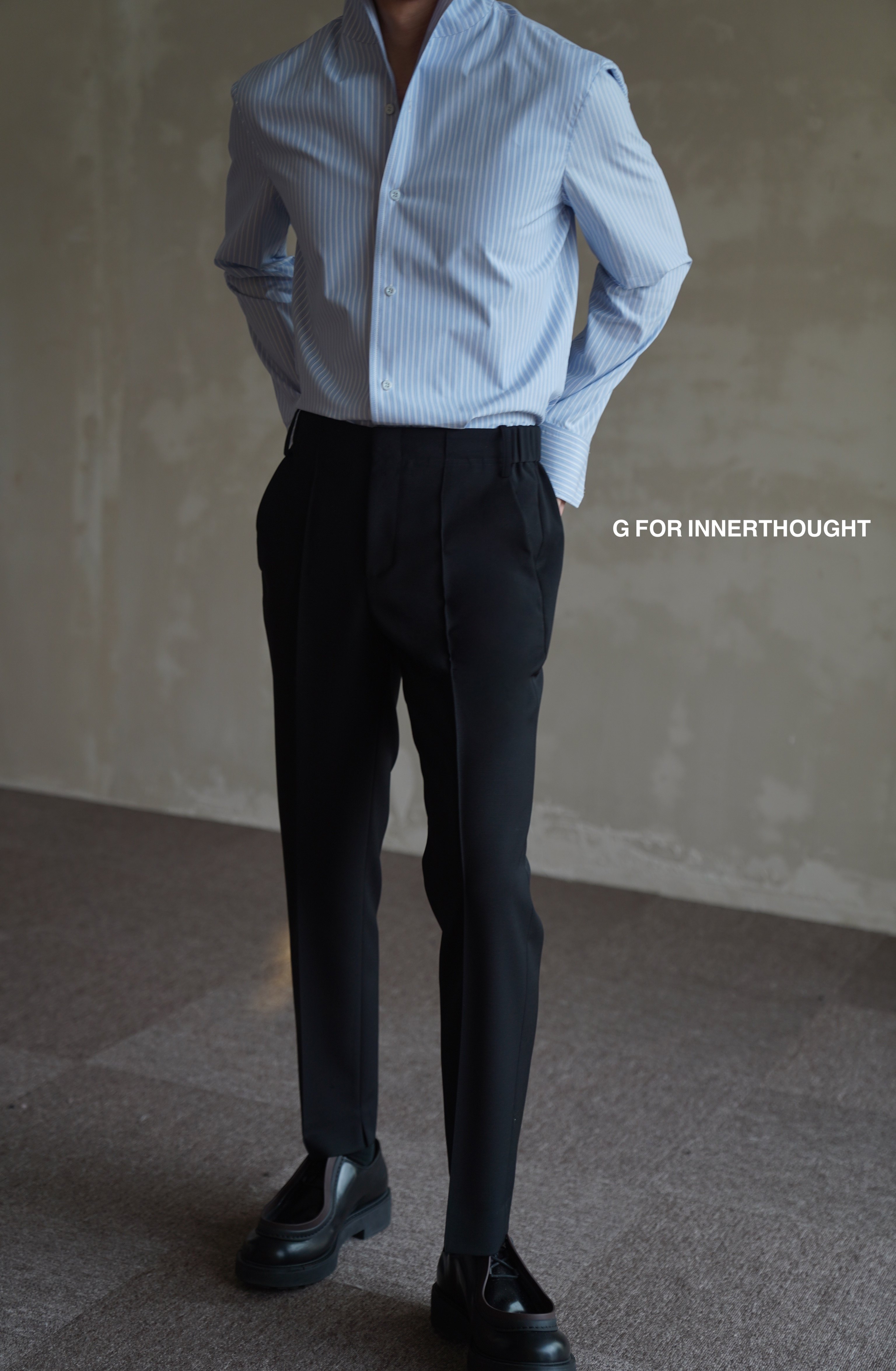 G FOR INNERTHOUGHT imported black stretch wool trousers slim-fitting casual nine-point straight drape feel autumn