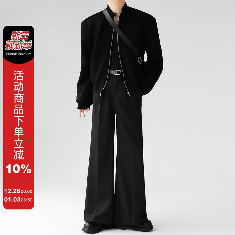 High-end trousers, men's and women's loose drapes, micro-flared pants, solid color ten pants, non-iron-free black floor-length pants, wide-leg pants