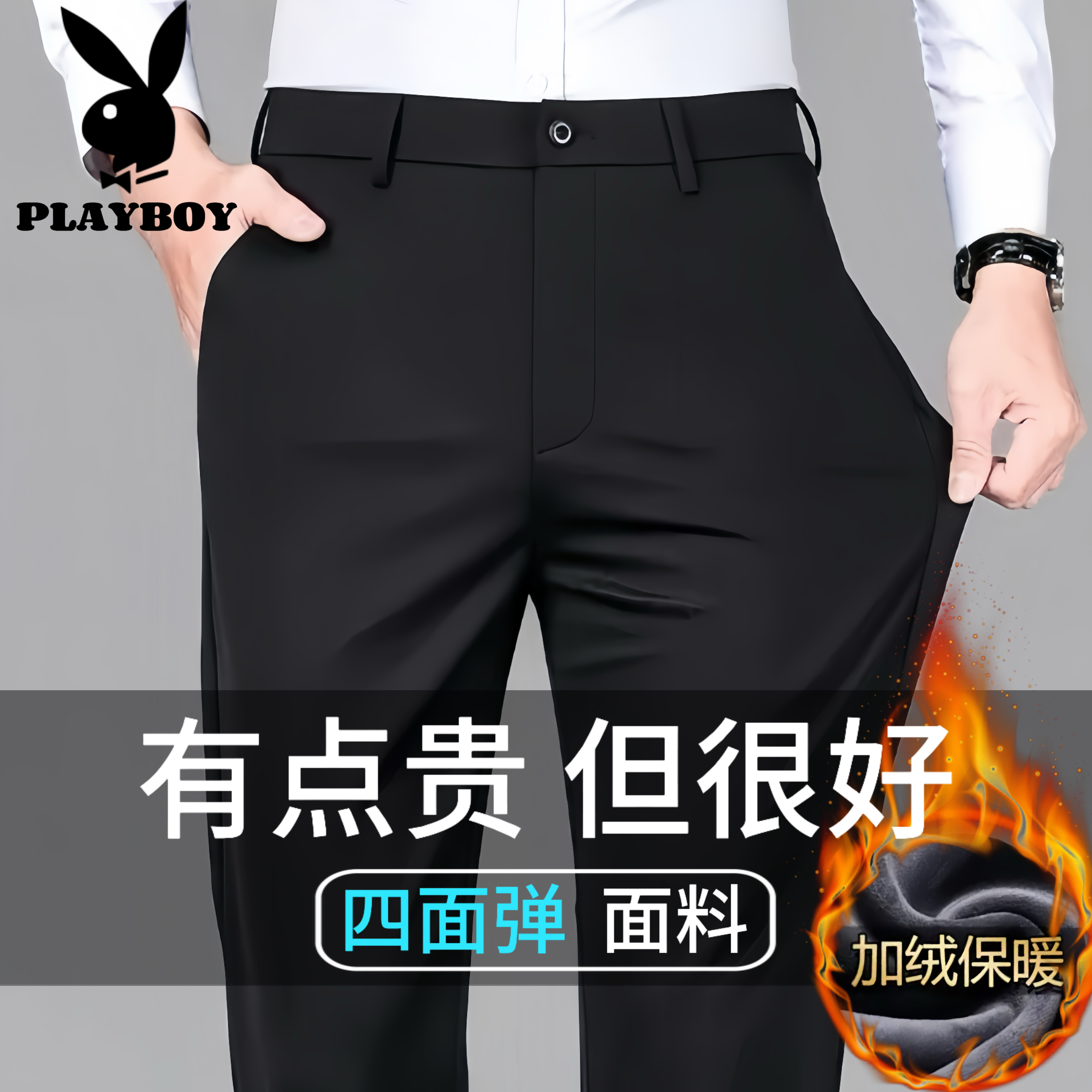 Playboy men's trousers, fall and winter business suit pants, men's pants, loose pants, plus size black casual trousers