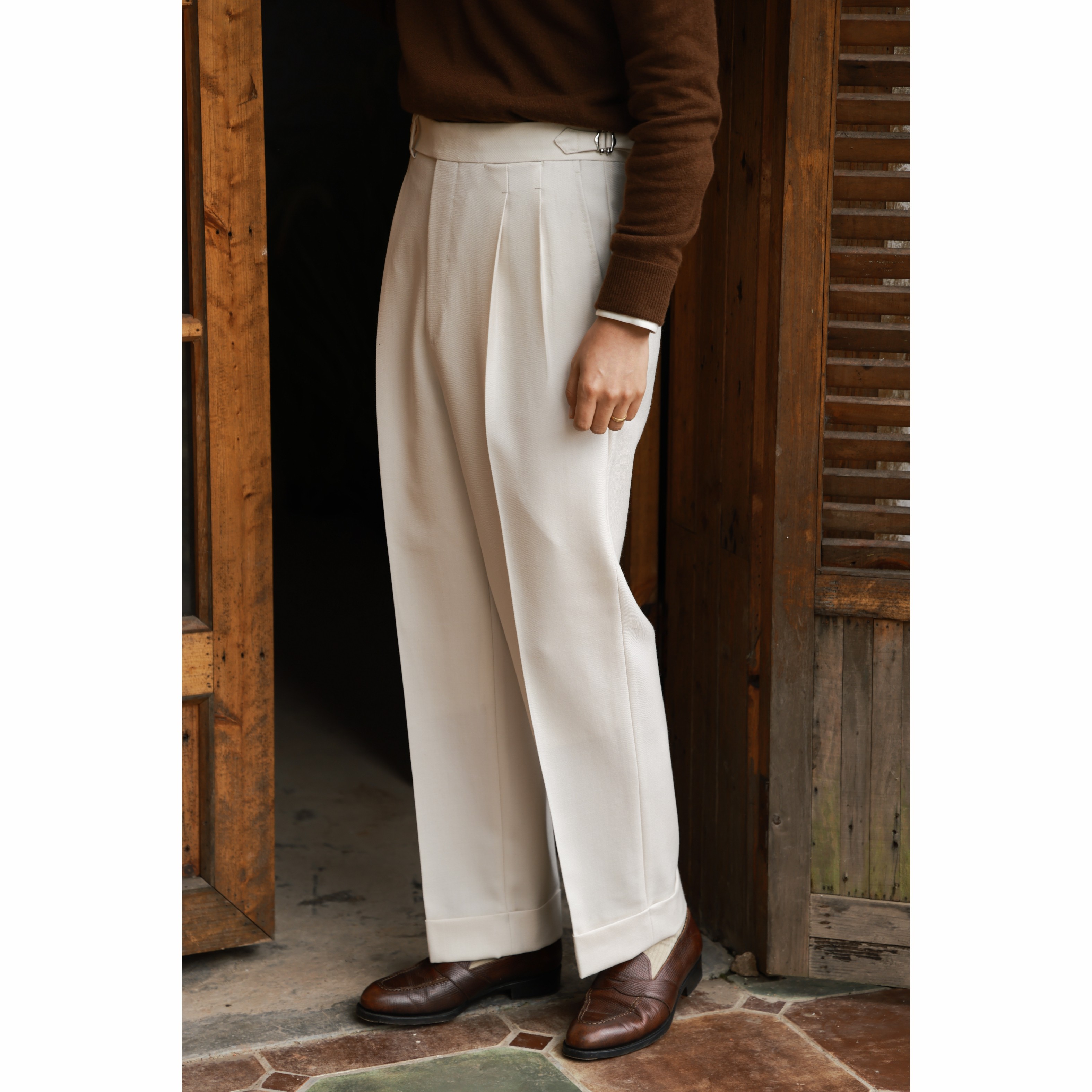 UGENTLE men's clothing Heavy cavalry pure wool "classical white" Italian Parisian buckle high-waisted trousers for men
