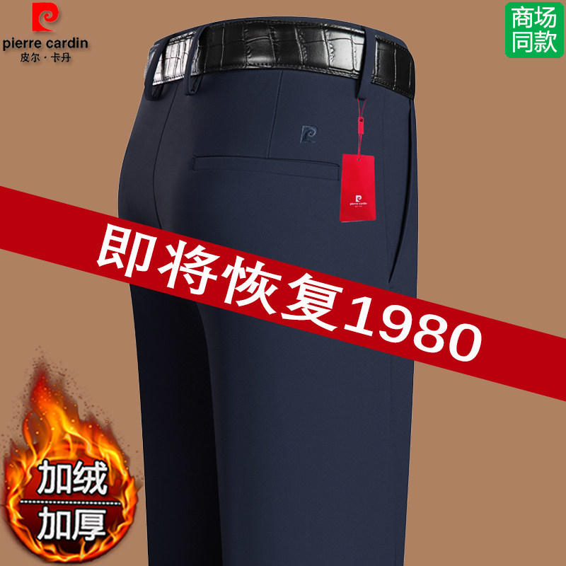 Pierre Cardin's autumn and winter new slacks business four-sided elastic middle-aged dad outfit fleece thickened men's trousers are iron-free