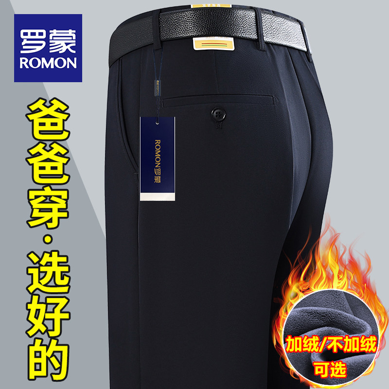 Romon fleece thickened trousers for men and women in autumn and winter new straight loose slacks non-iron dad suit pants