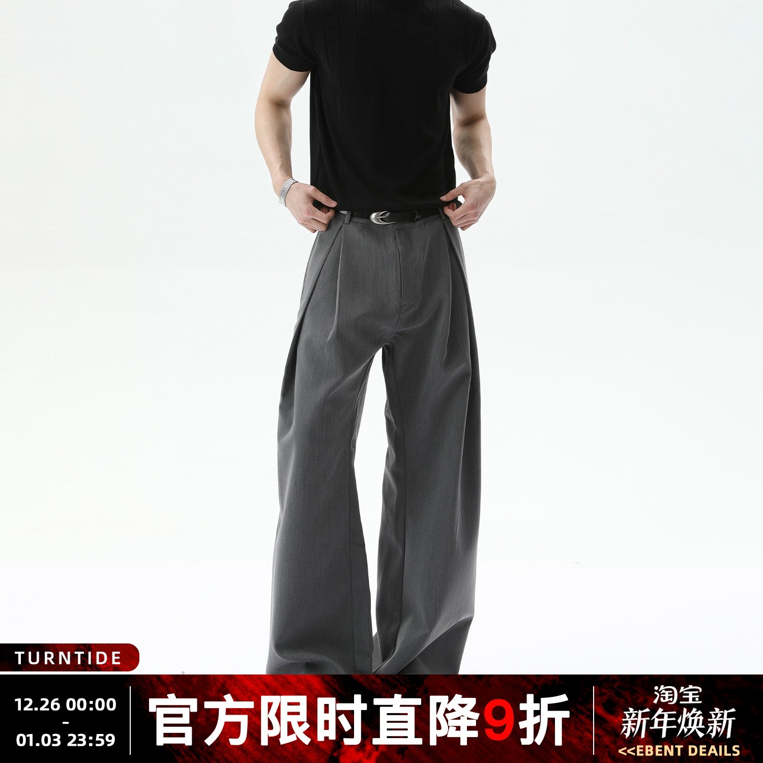 TURNTIDE Three-dimensional A-line silhouette double-pleated scimitar trousers loose commuter cleanfit summer casual trousers