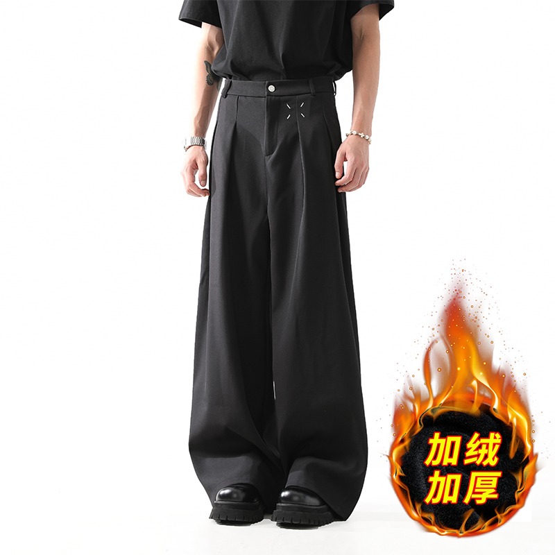Korean Majira cleanfit black trousers men's autumn and winter plush wide-leg loose casual straight suit trousers