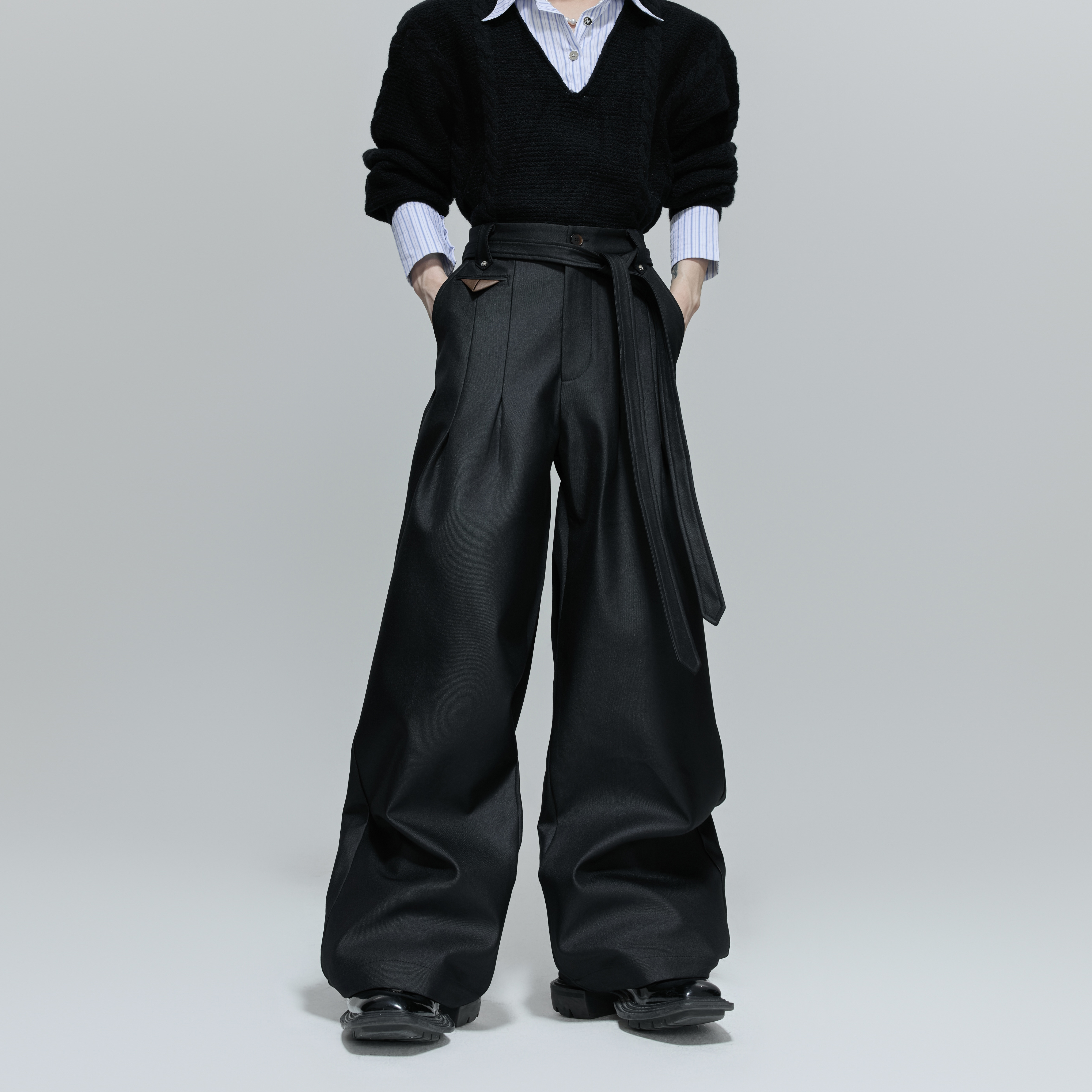 ArguE CulturE new fabric glossy pressure-sensitive pleated straight-leg trousers Premium tunic belt design trousers