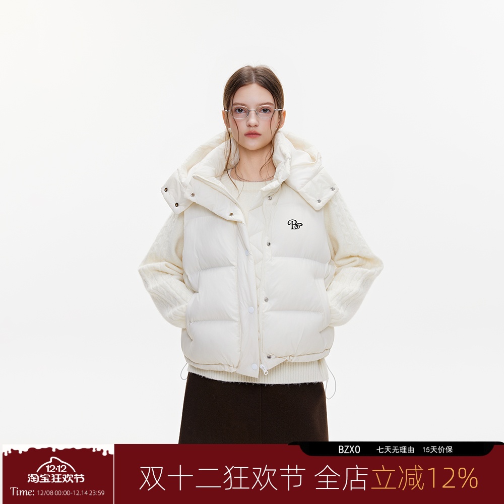 BZXO simple embroidery down cotton hooded vest cotton jacket women's autumn and winter new thickened warm versatile jacket