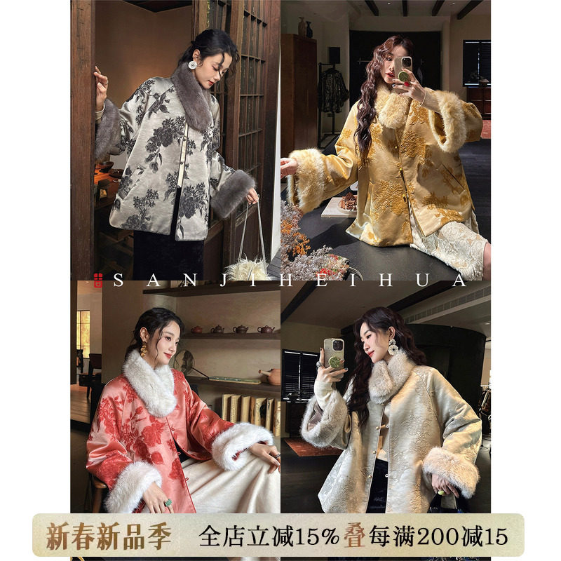 Sanji Heihua [Ink Fragrance Collection] New Chinese fur collar cotton jacket thick jacket winter wear 2025 new top jacket trend