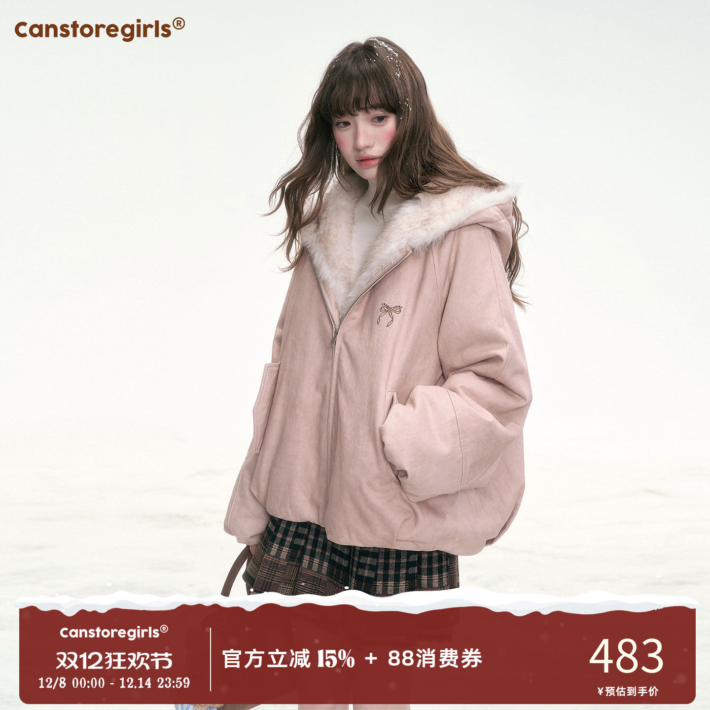 Canned stores 'Mist Peach Velvet Pocket' winter eco-friendly fur jacket warm cotton jacket wearing a parka on both sides