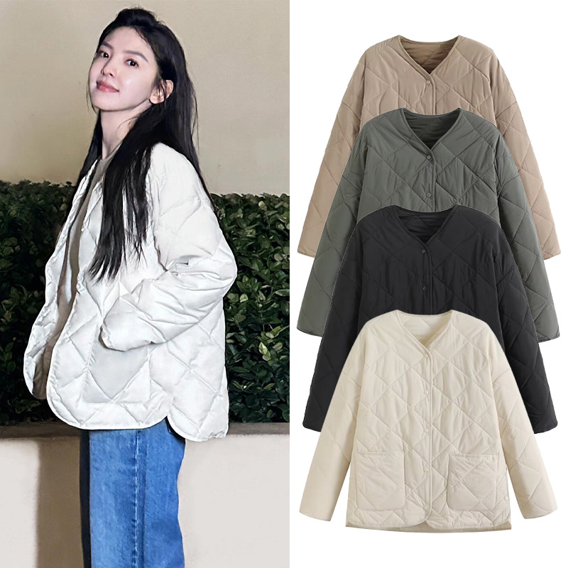Zhang Ruonan's same retro collarless diamond plaid cotton jacket for women is popular this year, and the casual style is light and thin padded jacket