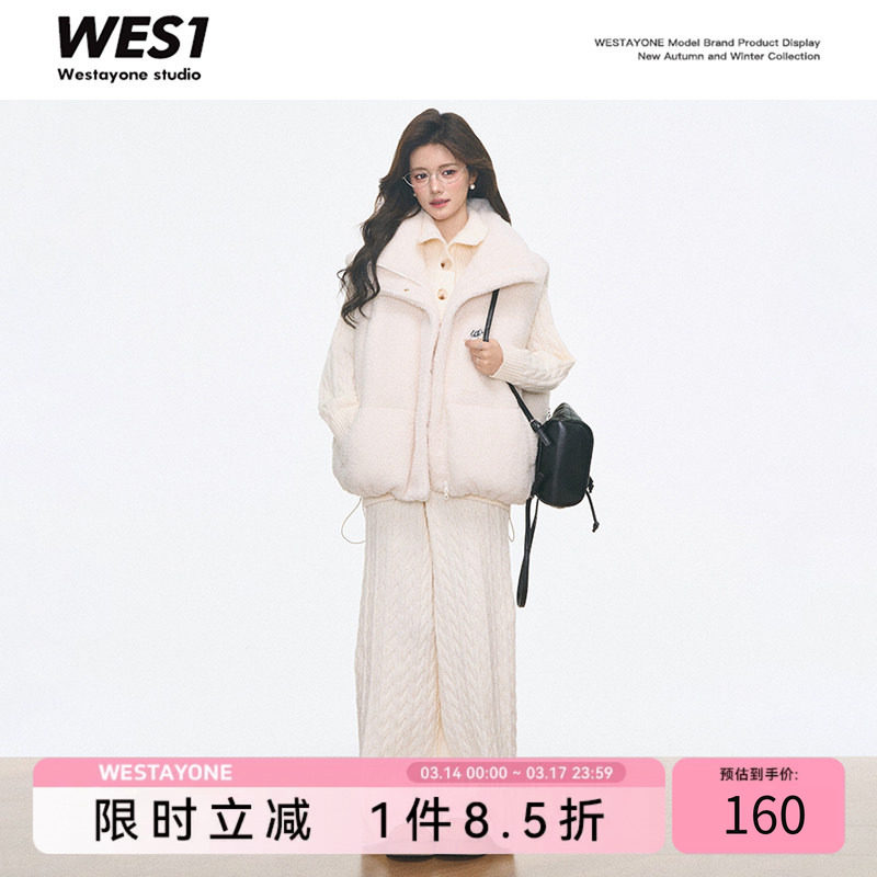 12.8 New WESTAYONE Winter Lamb Wool Cotton Jacket Vest Jacket Wear Women's + Knitted Cable Suit