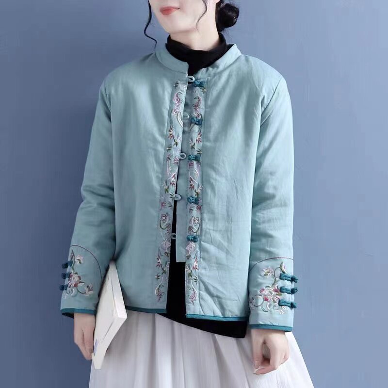 Clearance pick-up cotton linen jacket cotton jacket cotton clothes women's thickened warm and loose Chinese style embroidered linen cotton jacket