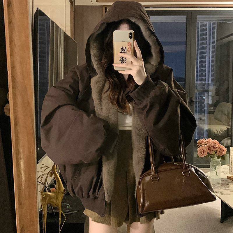 The design sense is worn on both sides, warm coffee-colored cotton jackets, women's winter casual loose zipper coats, cotton coats
