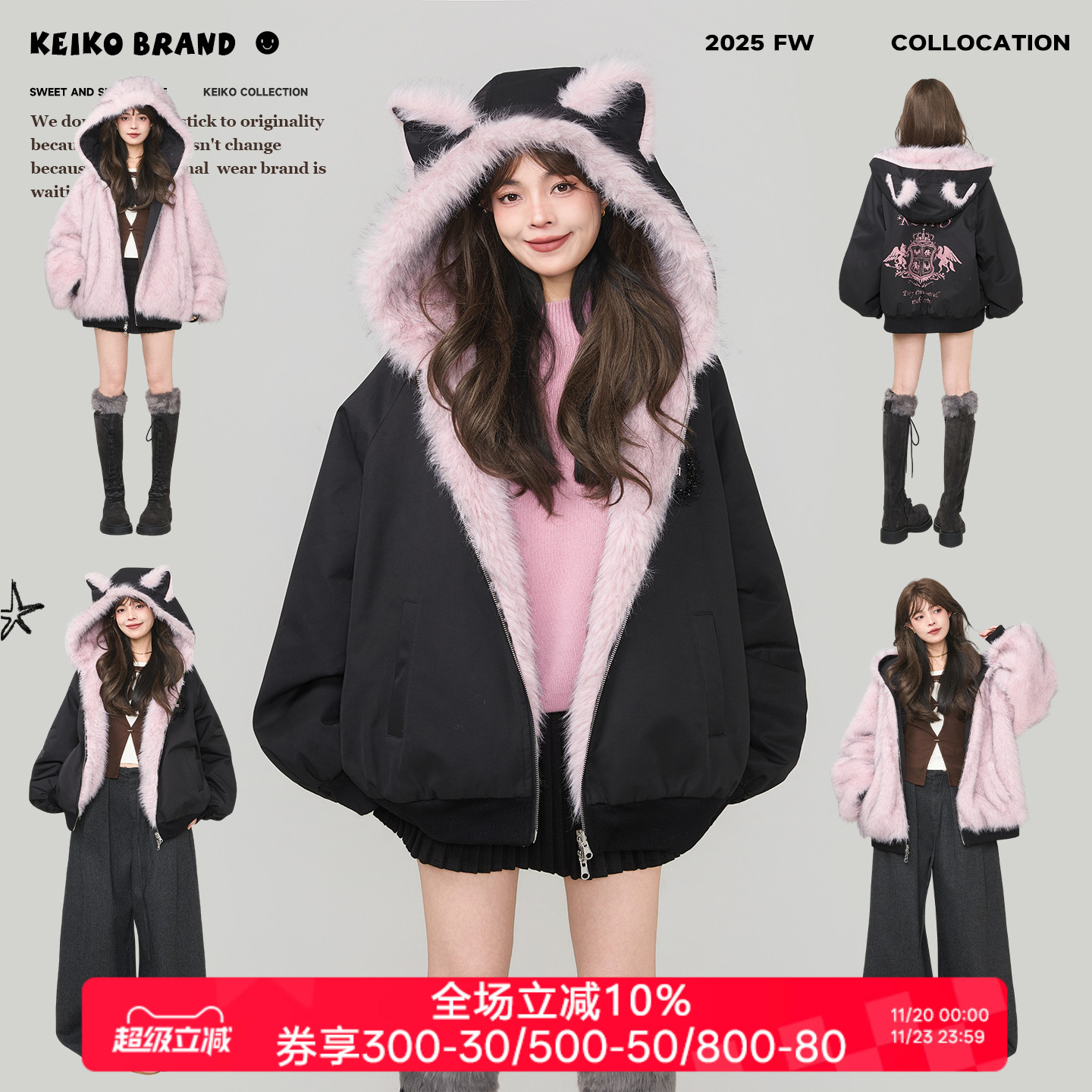 KEIKO [front and back] Korean eco-friendly fox fur fur jacket winter mountain carving fur hooded cotton jacket