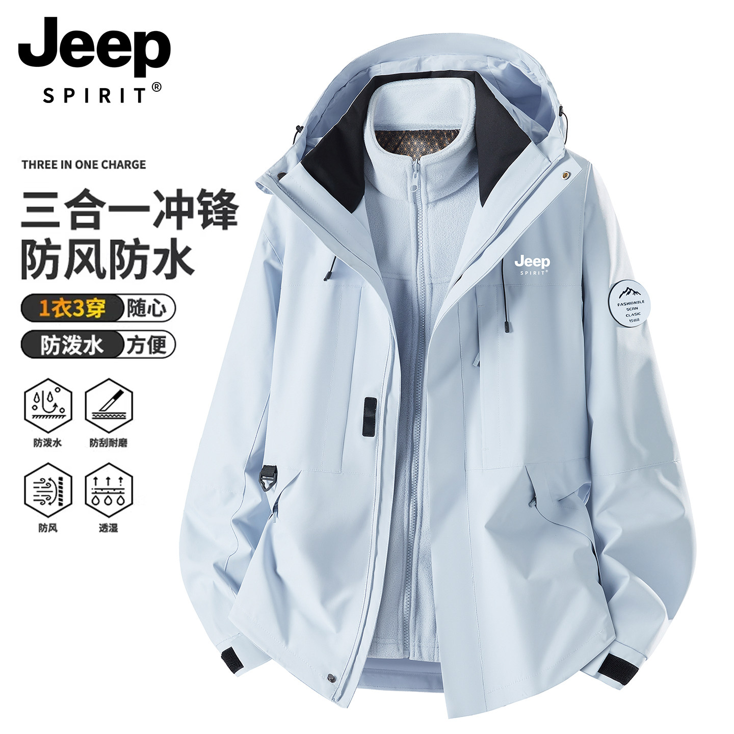 JEEP SPIRIT Outdoor Jacket Men's and Women's 2026 New 3-in-1 Youth Cotton Windproof Jacket