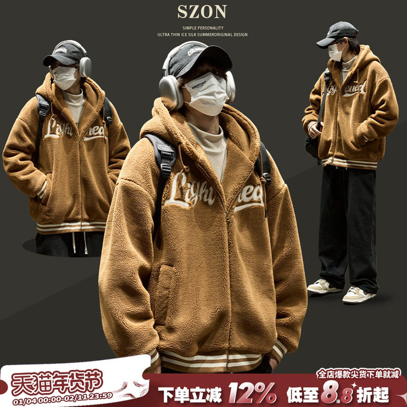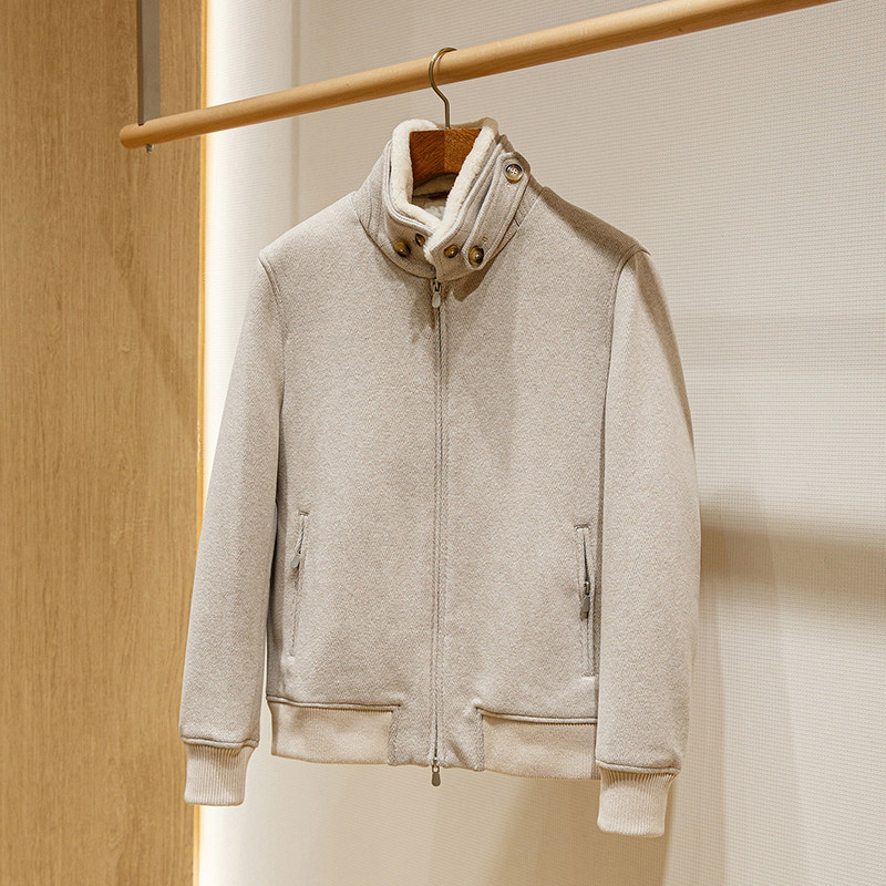 [B*C version of old money style] wool blend stand-up collar spliced lambswool autumn and winter warm thickened cotton jacket men