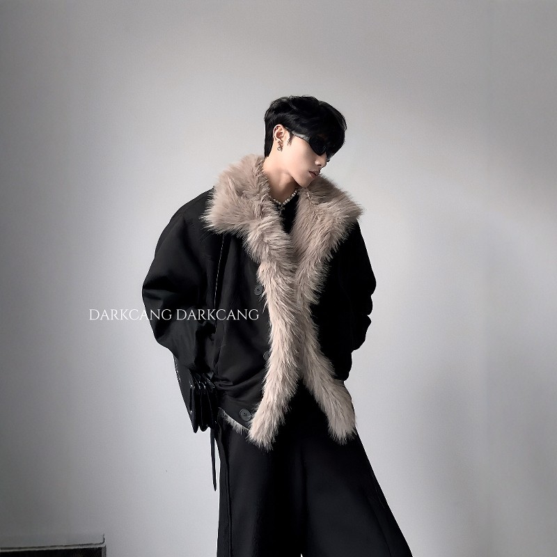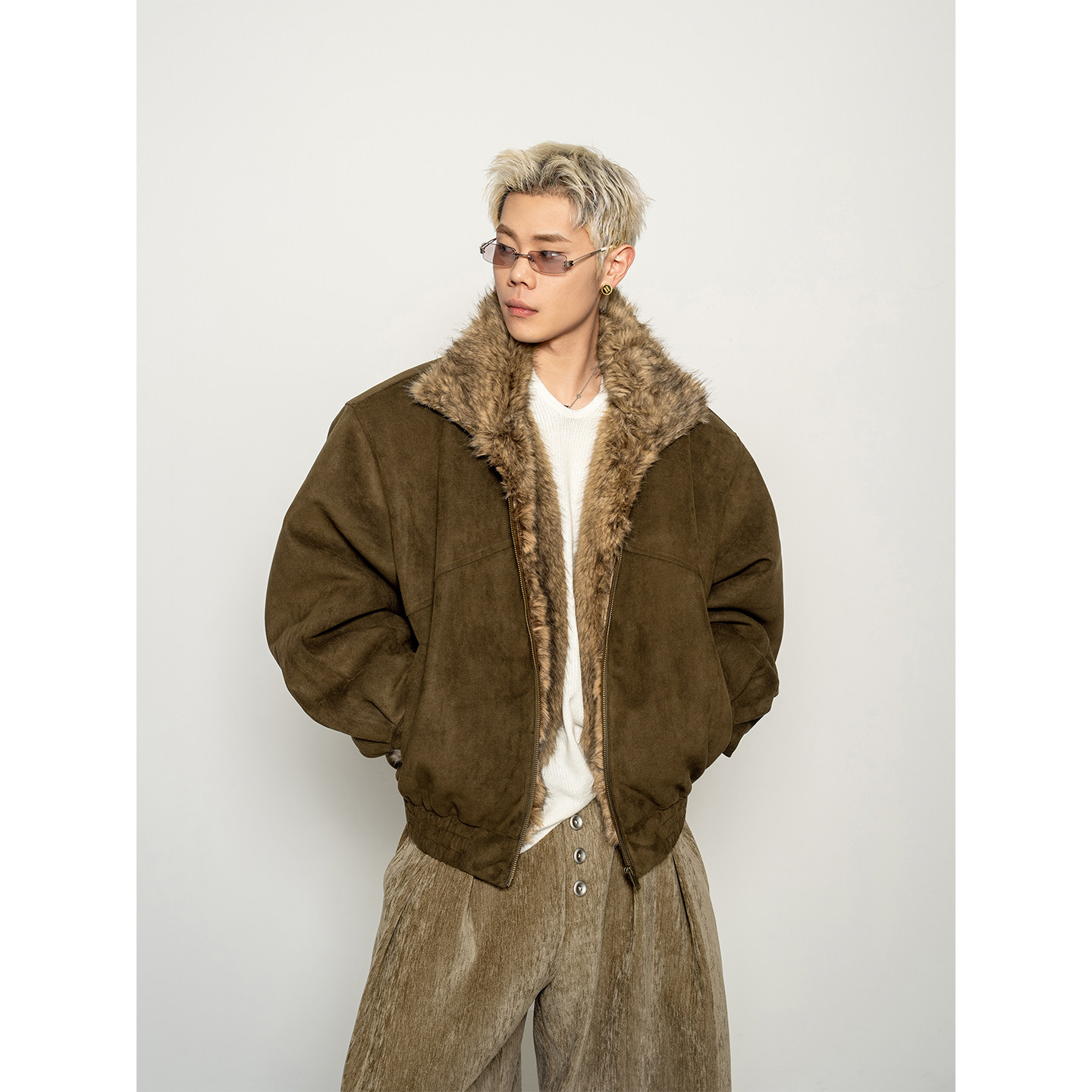 DBW Doublewin heavy suede faux fox fur padded jacket winter loose and wide shoulder pad thick jacket