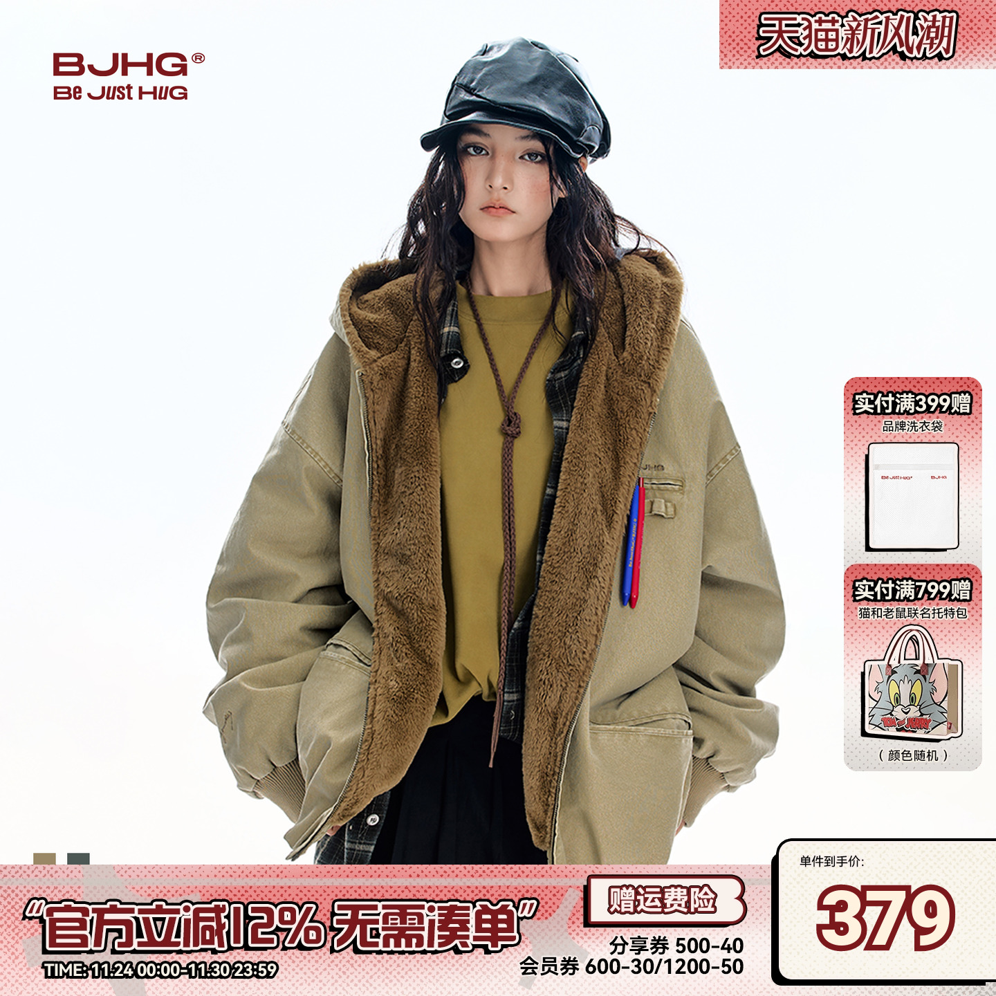 [Star Same Style] ER two-sided wearing mountain carved suede fur collar hooded jacket cleanfit American couple outfit