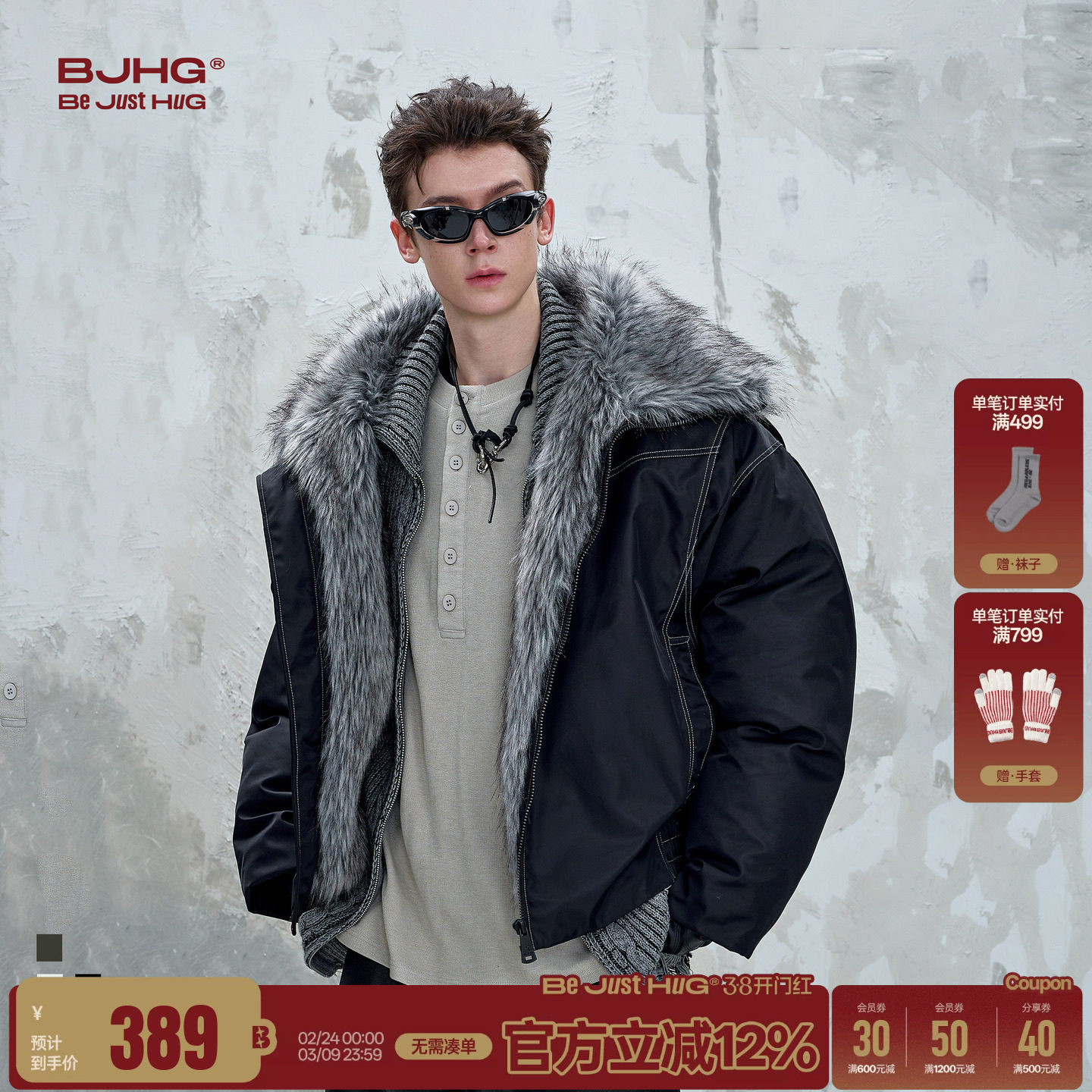 Cheng Tong's BJHG reckless mountain carving cotton jacket men's winter ruffian design fur collar cotton clothes women