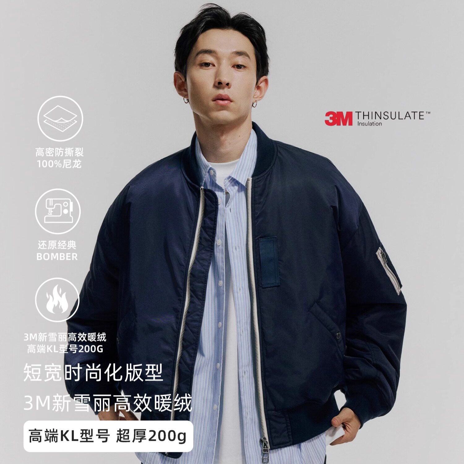 MASSULTI 200g thick 3M Thinsulate KL type short and wide padded MA1 flight jacket cotton jacket